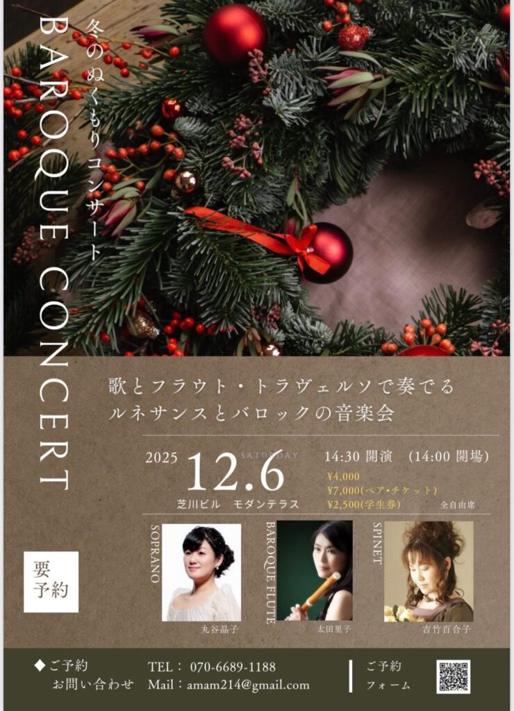 歌とフラウト・トラヴェルソで奏でるルネサンスとバロックの音楽会♪